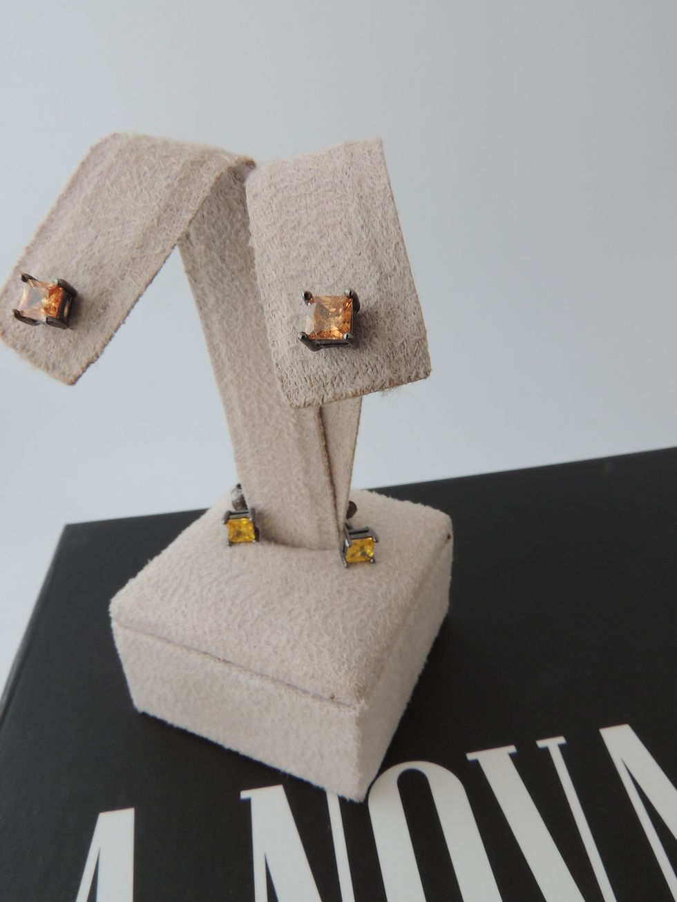 Brinco 2º Furo duplo com Pedra em Zircônia colorida. Folheado em Ródio Negro.