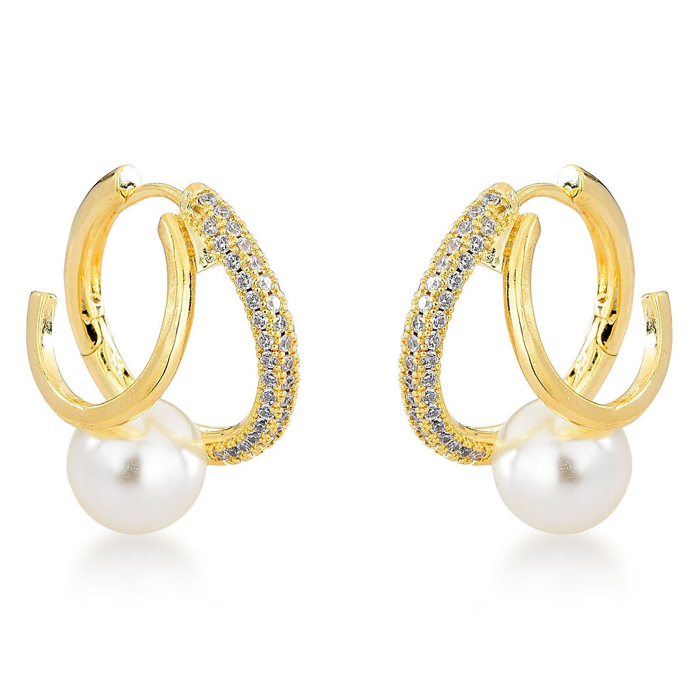 Brinco Click 22MM Cravejado com pérola. Folheado ouro 18k