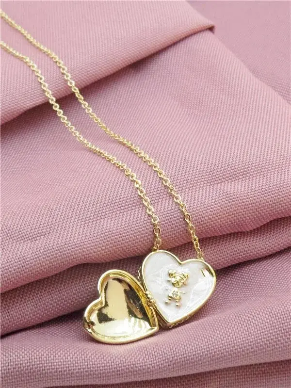 Gargantilha com coração de Madrepêrola com menina no centro. Folheado ouro 18K.