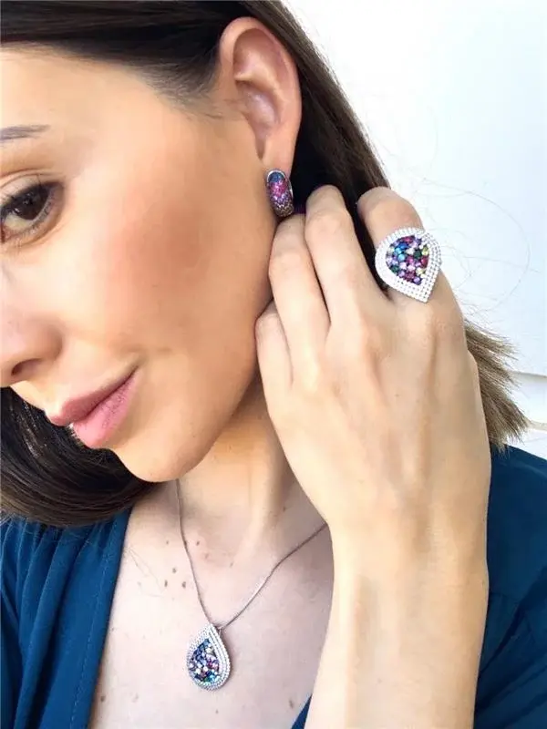 Gargantilha Veneziana fina - Pingente coração cravejado com zircônias Coloridas.